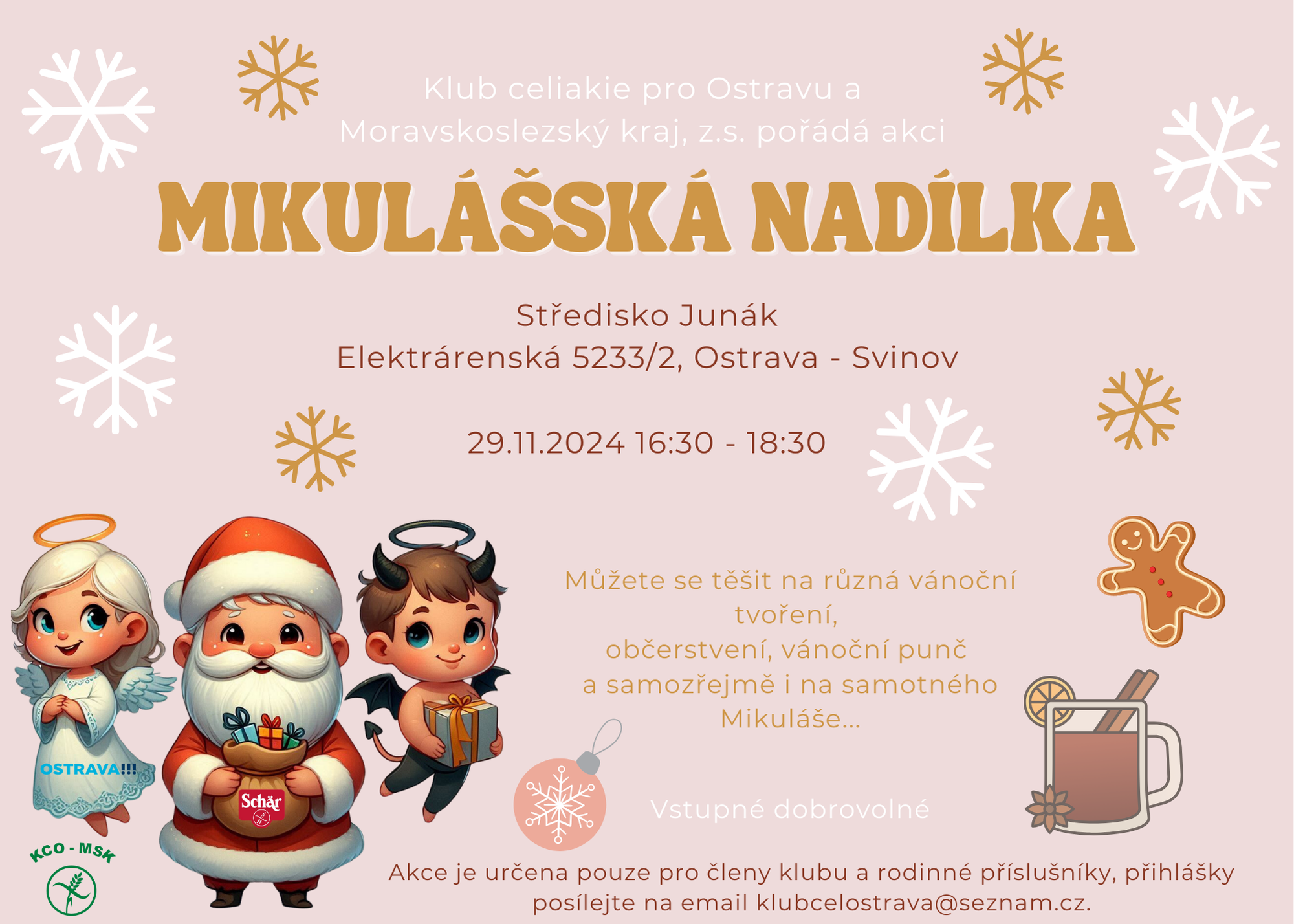 Přijďte se svými dětmi do Střediska Junák, Elektrárenská 5233/2, Ostrava-Svinov v pátek 29.11. 2024 v čase 16:30 - 18:30.