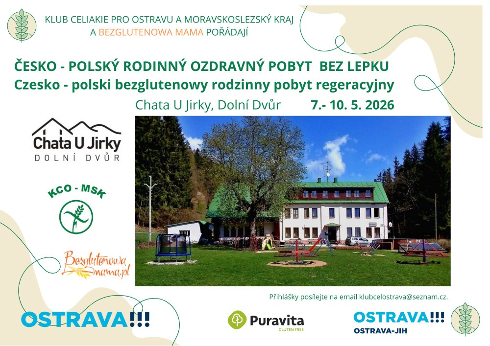 již počtvrté pořádáme Ozdravný rodinný pobyt v "BEZLEPKOVÉM RÁJI" v penzionu U Jirky v Krkonoších, který se uskuteční ve dnech 7.-10. 5. 2026 (Dolní Dvůr 22).
