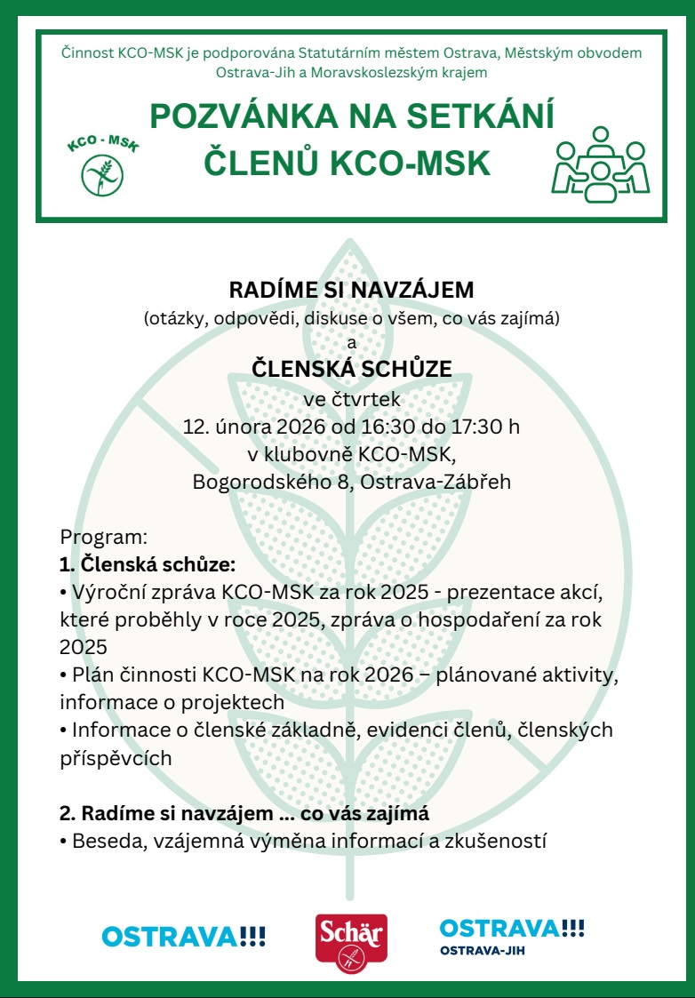 ZMĚNA TERMÍNU SETKÁNÍ ČLENŮ KCO-MSK A ČLENSKÉ SCHŮZE - 12.2.2026